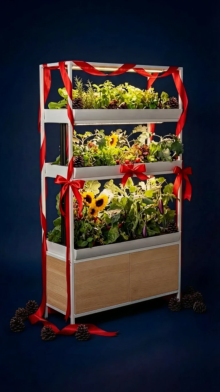 Slim, sophisticated, and surprisingly abundant. This furniture-grade garden transforms your living room into a lush sanctuary, proving you don’t need a backyard—or a lot of square footage—to grow a serious harvest.