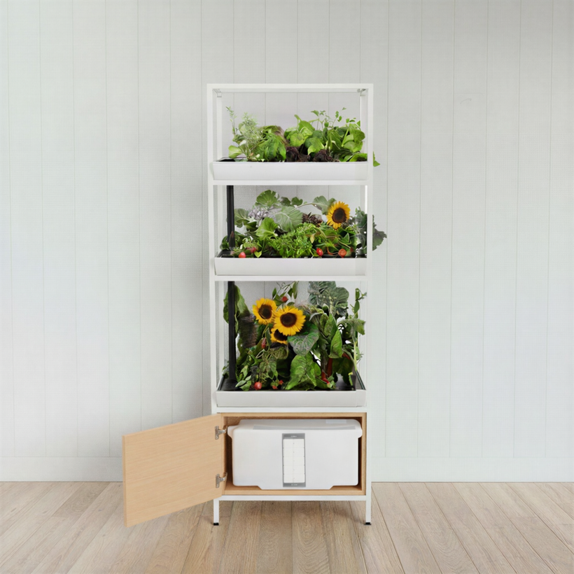 Introducing a new compact design built to fit any home. Grow up to 36 plants—from juicy tomatoes to fresh herbs—and enjoy a living centerpiece that brings freshness and beauty to your space.